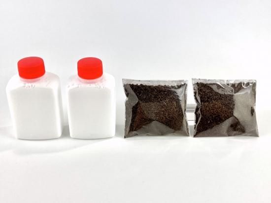 土肌をリアルに再現するパウダー素材と液体接着剤のセットです。